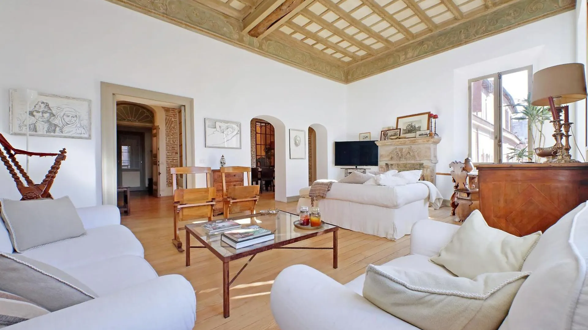 El apartamento está a alrededor de 25 minutos andando de la Plaza del Pópolo y a alrededor de 20 minutos andando de la Fontana di Trevi. Los huéspedes pueden explorar cómodamente Roma y llegar a la Boca de la Verdad, situada a unos 600 metros. El apartamento de 120 m^2 se encuentra al lado de la Sinagoga.